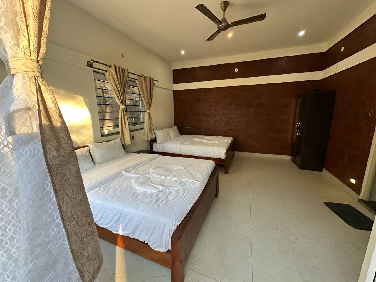 A perfect choice for families, featuring a spacious balcony sit-out overlooking the serene stream and lush jungle surroundings. Designed with elegant laterite stone, it offers a blend of comfort and nature. Includes modern amenities like Wi-Fi, Smart TV, air conditioning, 24-hour hot water, power backup, and in-room refreshments.